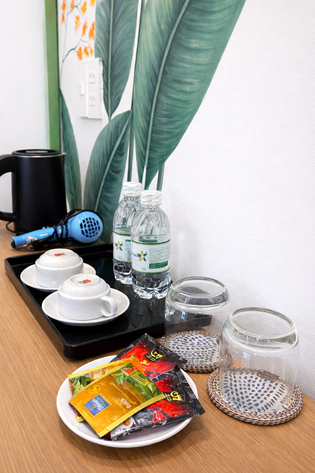 - Nước khoáng, trà và cafe miễn phí